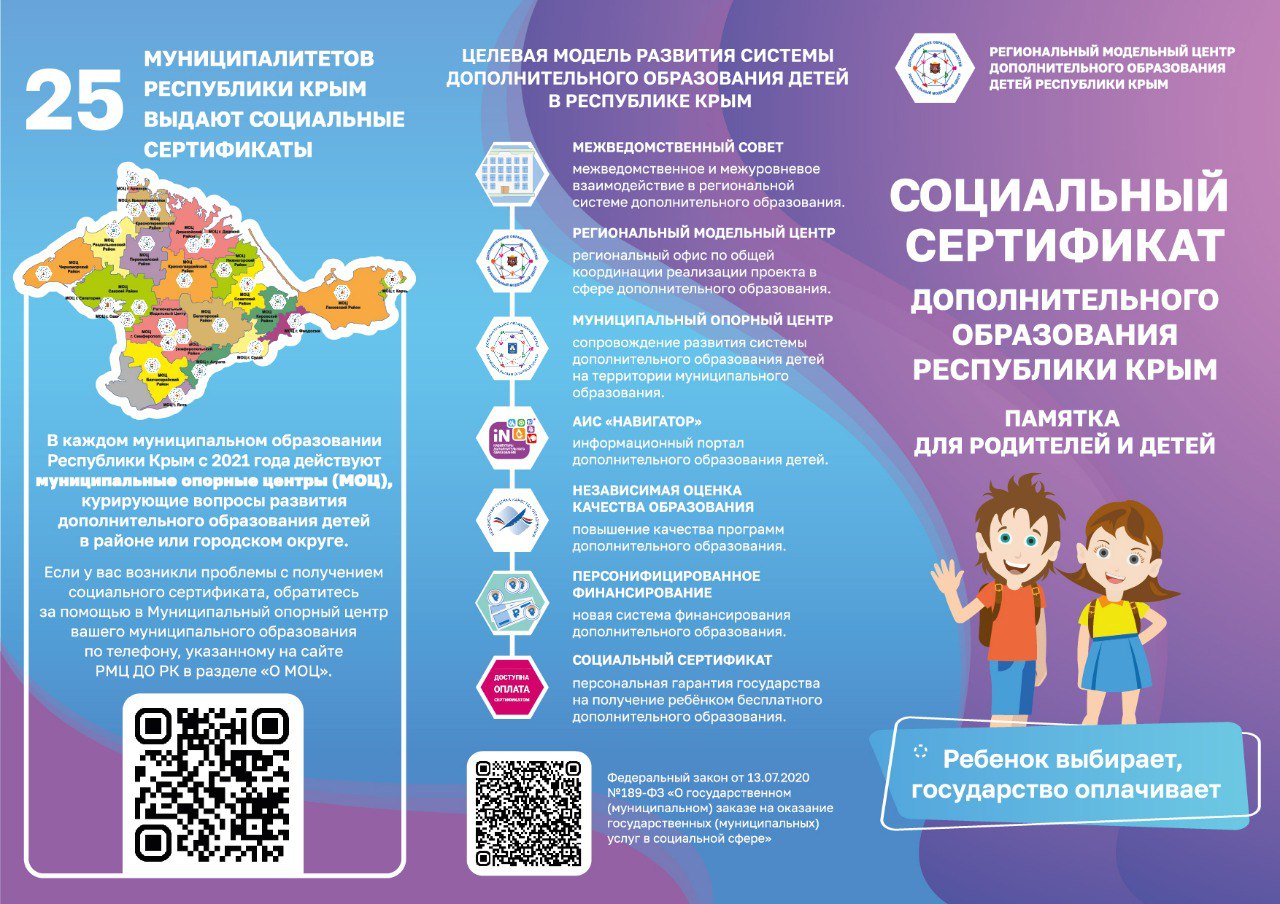Навигатор дополнительного образования Республики Крым – информационный ресурс для родителей, который поможет найти творческое объединение, кружок, секцию для развития способностей ребенка в возрасте от 5 до 18 лет. На информационном портале Навигатора можно увидеть перечень всех программ и записаться в понравившееся творческое объединение.